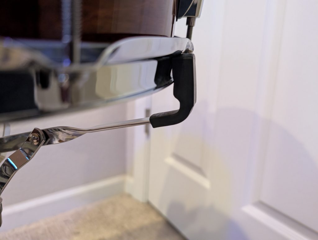 If your snare sits too low and you think you need a taller stand, make sure that you are mounting the snare on the tips of the claw, like so: