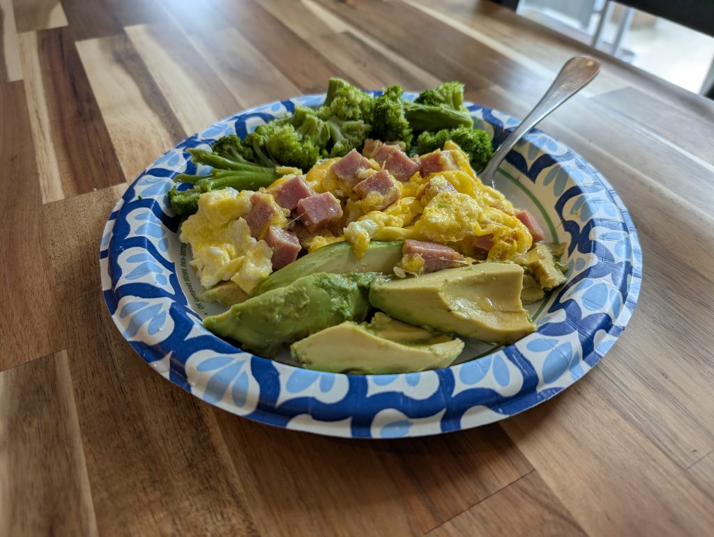 So here’s what I came up with in the moment. Admittedly a side of broccolli is odd next to scrambled eggs. But everything was a whole food (minus the Spam which I’m only eating to get rid of).